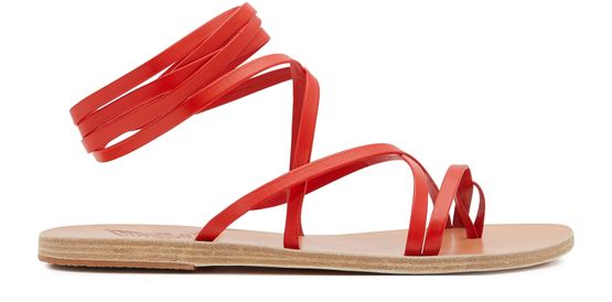 These Morfi sandals from Ancient Greek Sandals embody the blend of poetry and expertise that characterizes the Greek fashion house. The leather straps are intertwined on the top of the foot, while the sole is decorated with the brand's emblematic logo. Were these light shoes with a long bohemian dress.