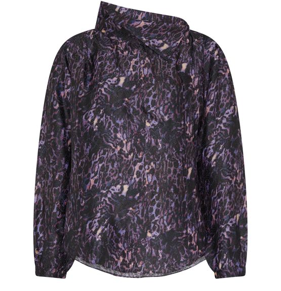Isabel Marant's Muriel blouse has an asymmetric cut with visible stitching and a concealed closure. It features long-sleeves with cuffs and a high-neck design. The regular length blouse has cuffed sleeves and an all-over printed pattern for a stylish look.