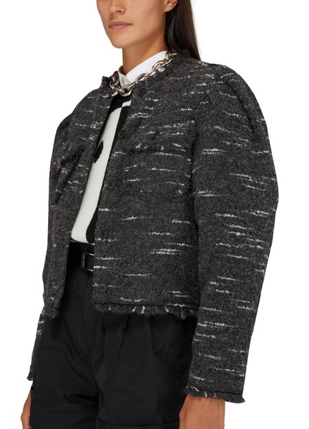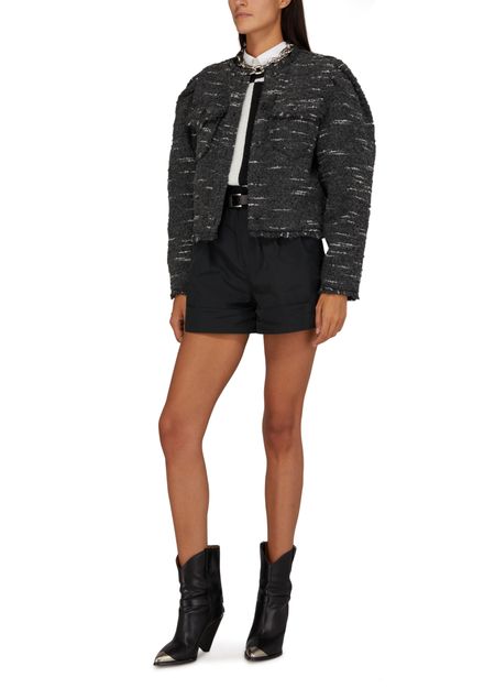 Isabel Marant Etoile Neves jacket is a stylish and versatile piece that can elevate any outfit. This cropped jacket features long sleeves, a round neck, and a buttoned fastening for a classic look. The breast pockets add a touch of functionality to this chic and timeless piece.