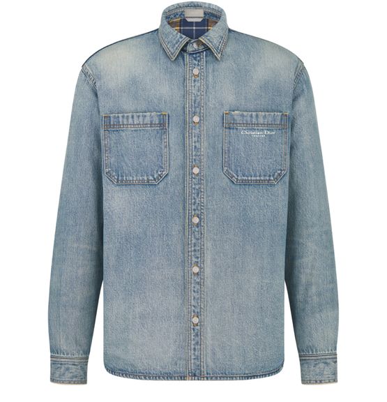 Reveal Dior's Overshirt with Checkered Interior, showcasing a unique checkered motif on the inside. Highlighting Christian Dior Couture embroidery on the pocket, this piece features a classic button closure and practical chest patch pockets. Perfectly balancing style and functionality, this overshirt offers a refined look for any occasion.