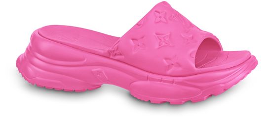 The Pool 55 flat comfort mule comes in fully waterproof rubber with a wide front strap embossed with Louis Vuitton's signature Monogram pattern. This fashionable pool slide has a lightweight, molded outsole inspired by the Run 55 sneaker, which adds extra height. Its anatomic insole provides exceptional comfort.