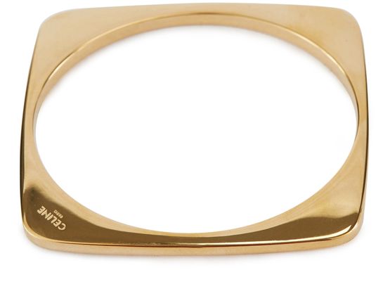 Celine showcase the rigid square bracelet, a subtle piece made in the image of the creator. With its square shape on the outside, and more rounded inside, this golden brass finished piece of jewellery takes the form of the iconic C of the Parisian label, which is to say their logo. Ideal to complement all sorts of outfits, this accessory can be worn with a...