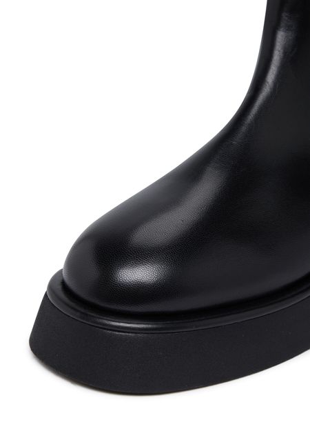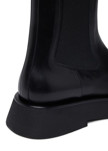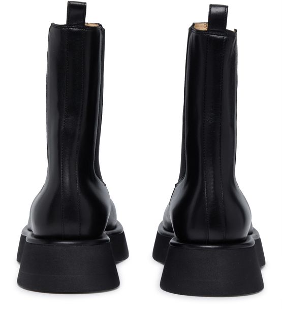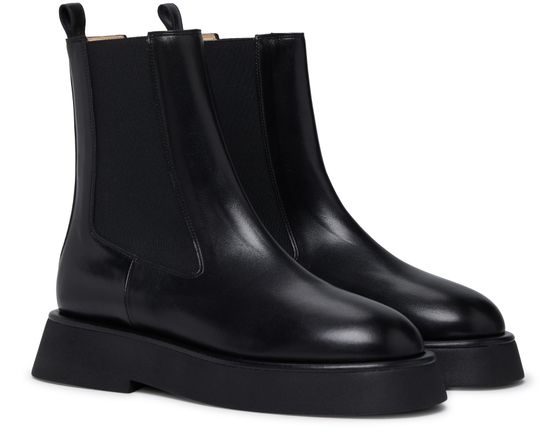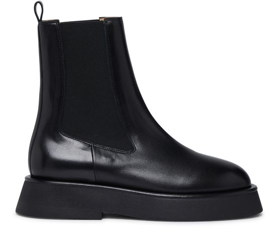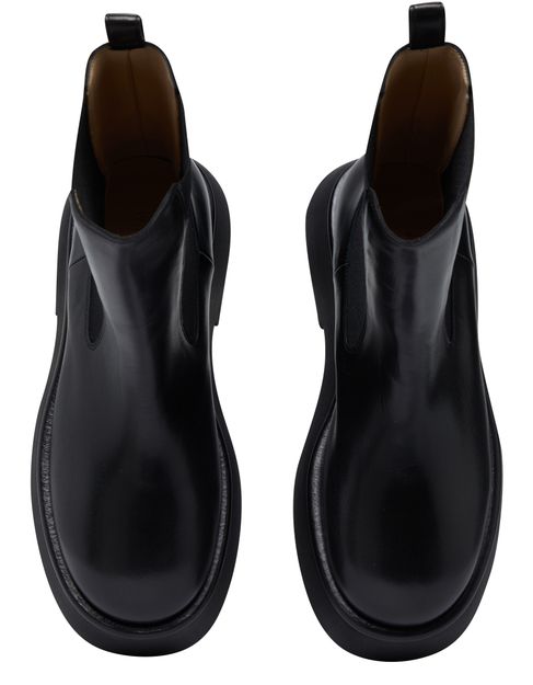 Description : Chelsea boots, patent leather, round toe, elasticated sides, pull-on design, leather loop at the back for easy slipping on and off, thick outer sole, heel cushion.