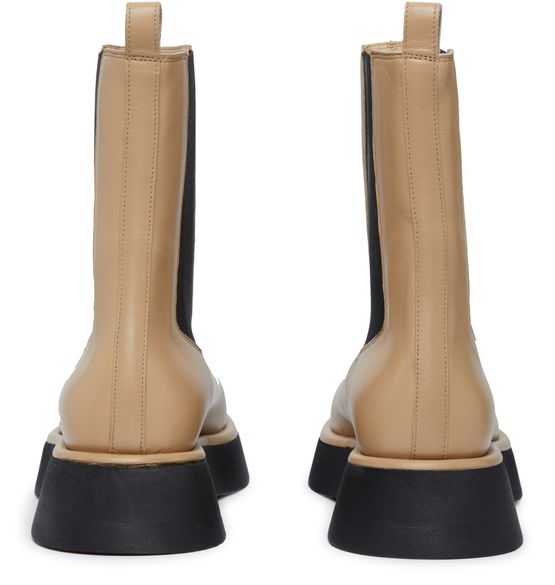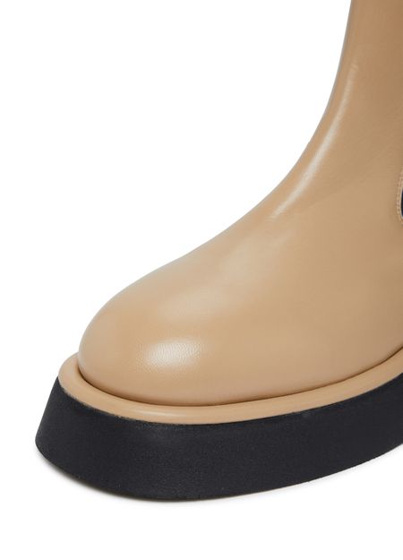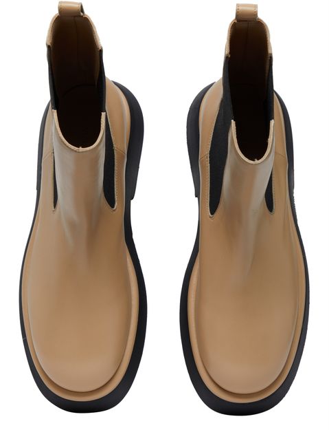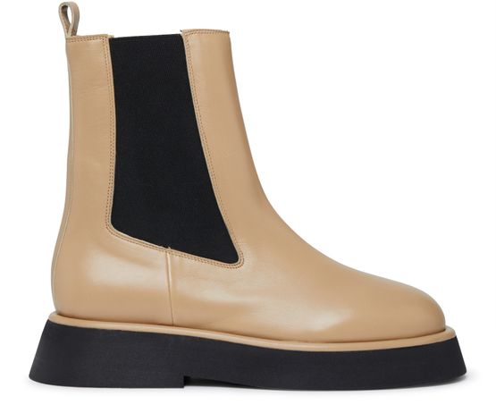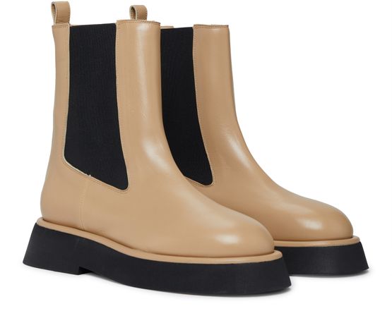 Description : Chelsea boots, patent leather, round toe, elasticated sides, pull-on design, leather loop at the back for easy slipping on and off, thick outer sole, heel cushion.