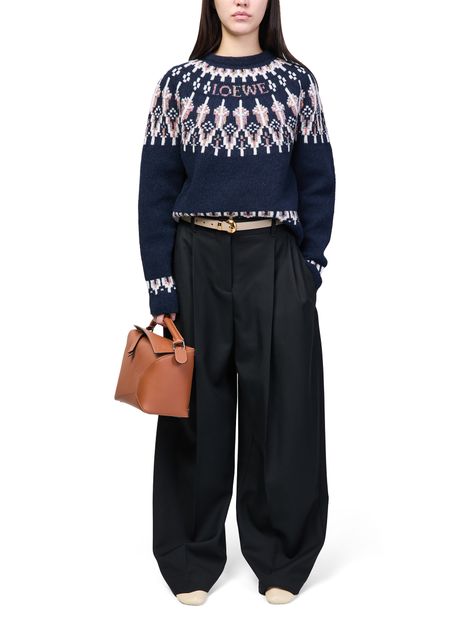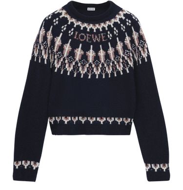 Reveal Loewe's round-neck wool blend sweater, crafted from warm fabric with a modern geometric detail and an embroidered front logo. The long sleeves and classic neckline offer a refined silhouette, making this sweatshirt a versatile choice for both casual and elevated looks.