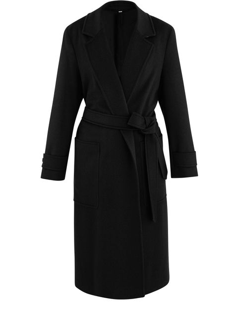 The Sherringham lapel collar coat with buttoned pockets on the sleeves reflects the brand's expertise in making coats. It has a belt to tie to define the waist.