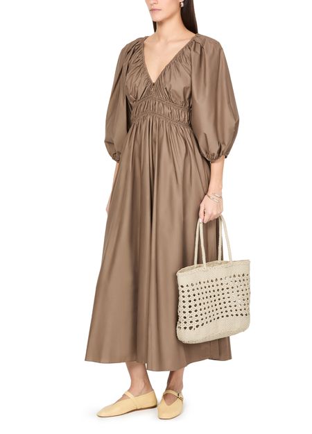 Shirred plunge button dress