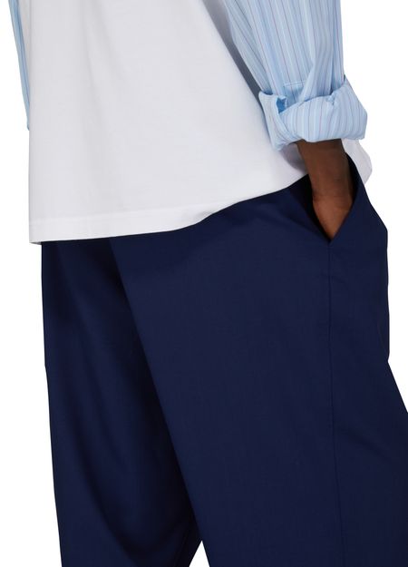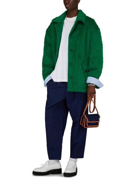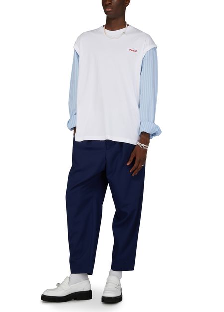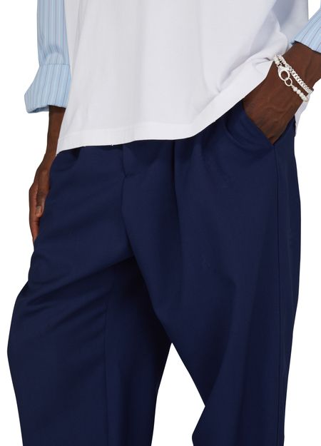 Marni's short pants offer a stylish twist with their pleated design and elasticated waist for ultimate comfort. Featuring belt loops and a buttoned zipper closure, these loose-fit pants blend fashion with functionality. Perfect for effortless dressing, they elevate any outfit, making you feel chic and relaxed for any occasion.