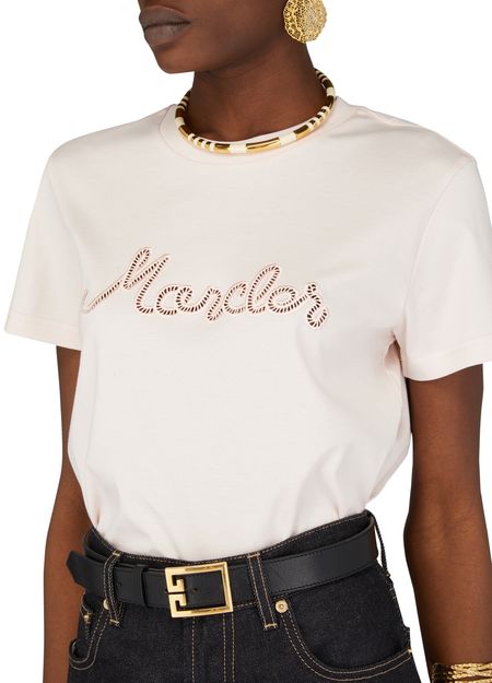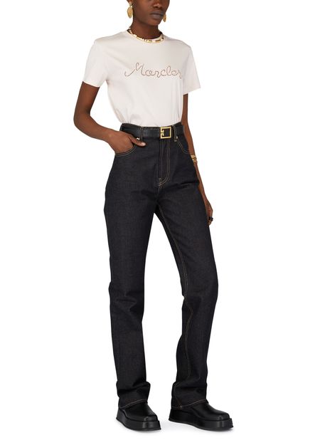Moncler's short-sleeve t-shirt exudes casual elegance with its round neck and slim fitting. The visible stitching adds a touch of detail, while the front logo subtly showcases the brand. This versatile piece is perfect for layering or wearing on its own, making it a stylish wardrobe essential for any season.