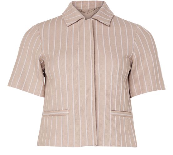 Reveal Max Mara's short-sleeved shirt jacket, featuring a refined striped print and a modern, cropped silhouette. The concealed closure and welt pockets add a sleek touch, while the lightweight design ensures effortless versatility for both relaxed and elevated looks.