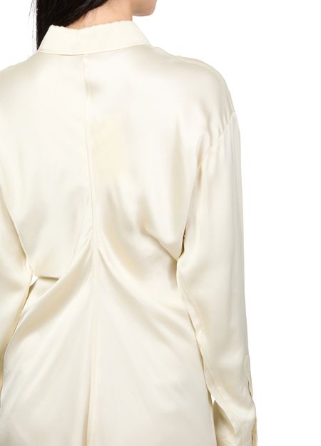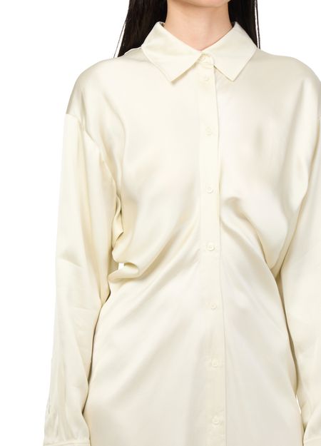 Reveal Toteme's slouch midi shirt-dress, a knee-length masterpiece with a buttoned-down collar and cuffed sleeves. The draped detail and back slit add a touch of elegance, while the button fastening ensures a perfect fit. Ideal for any occasion, this dress redefines modern style.