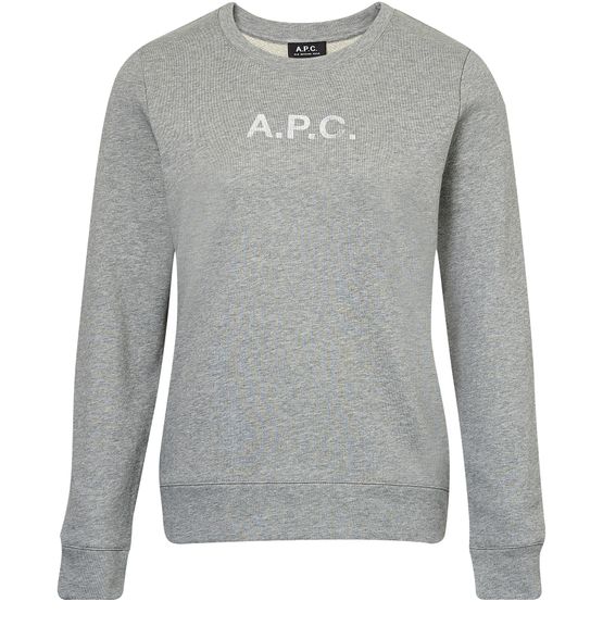 This monogrammed sweatshirt is a design from A.P.C. Made from duffel, the Stamp F sweatshirt features the name of the Parisian house. We would play on its casual side by matching it with a leather skirt.