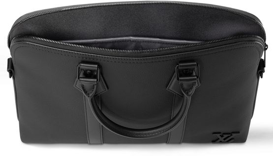 Slim and equipped with a padded pocket for a computer, the business-friendly Briefcase is fashioned from Aerogram grained calf leather for a supple, luxurious feel. It features a removable Jacquard strap, with Louis Vuitton woven into the textile, and is signed with metallic LV Initials on the lower right corner.