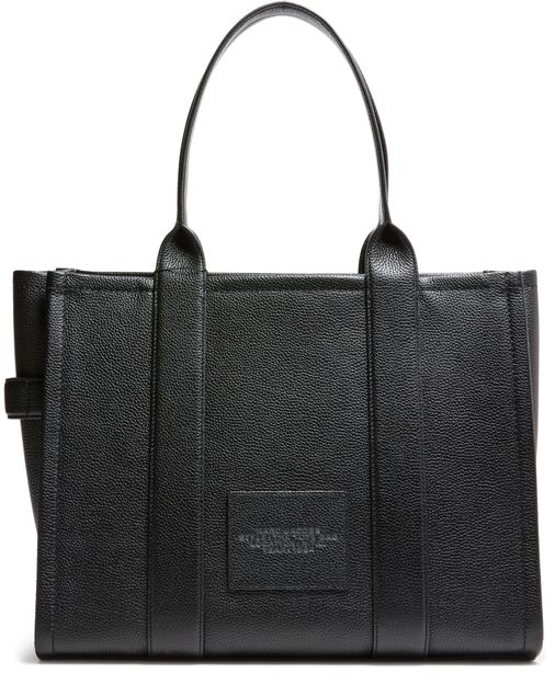 The Marc Jacobs Large Leather Tote Bag is a stylish grained leather shopper with a versatile design. It features a detachable strap and two handles for easy carrying options. The bag has a spacious interior compartment with an interior pocket for organization. It is adorned with a front logo and secured with a zipper closure. This bag can be worn in the hand or on...