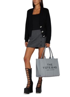 The Marc Jacobs Large Leather Tote Bag is a stylish grained leather shopper with a versatile design. It features a detachable strap and two handles for easy carrying options. The bag has a spacious interior compartment with an interior pocket for organization. It is adorned with a front logo and secured with a zipper closure. This bag can be worn in the hand or on...