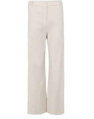 Description : belt loops, back darts, hook and concealed zipper closure, visible stitching, formal pants, back pocket, welt pockets, side pockets, wide cut, ankle length.