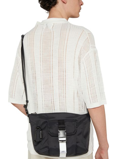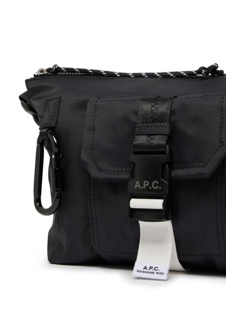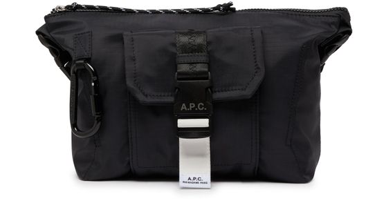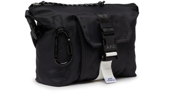 APC's Treck messenger bag is a medium-sized bag with an adjustable strap for versatile carrying options. It features a large front pocket for convenient storage and a buckle fastening for secure closure. The front logo adds a subtle branded touch. Perfect for wearing on the shoulder or crossbody for a modern, urban look.