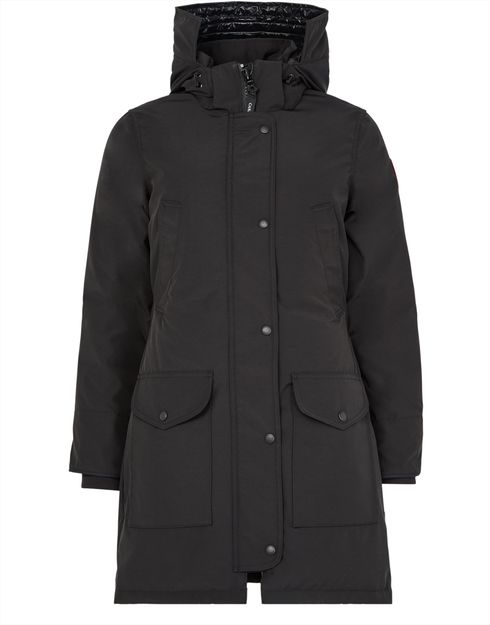 Introducing Canada's Trillium parka, a perfect blend of style and functionality. This long-sleeved piece features a hood, flap pockets, and a concealed zipper with snap fastening. The padded texture ensures warmth and comfort, making it an ideal choice for colder climates.