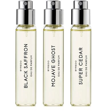 This selection include : Mojave Ghost, Super Cedar and Black Saffron perfumes. Ideal to use with BYREDO's functional and timeless 'Nécessaire de Voyage" leather travel cases.