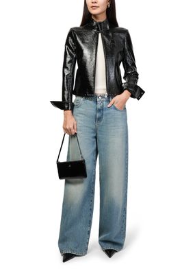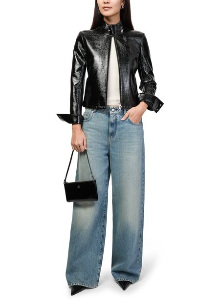 Reveal Courreges's zipped naplack pouch, a sleek shoulder bag featuring a single handle and padded texture. The metallic logo on the front and silver finish add a refined touch, while the zipper closure and single compartment ensure both style and practicality for modern essentials.