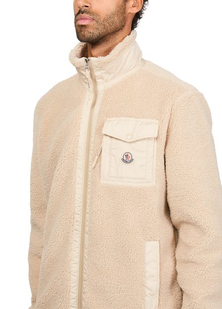 Unveil Moncler's elegant cardigan, crafted from a warm fabric that ensures comfort and style. This long-sleeved piece features a practical zipper closure and a distinctive chest logo, making it perfect for versatile styling occasions. Ideal for a chic yet cozy look.