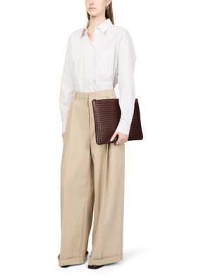 Reveal Dragon Diffusion's A4 pouch, crafted from smooth leather. This toiletries bag features a single compartment with a zipper closure, ensuring your essentials are secure. The visible topstitching adds a touch of sophistication, while the fabric lining offers a refined finish.