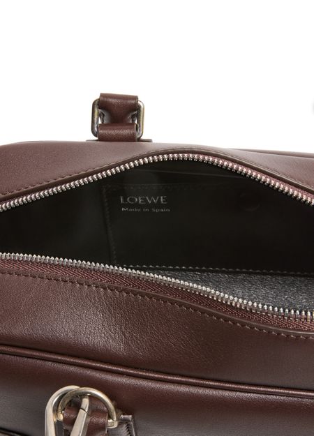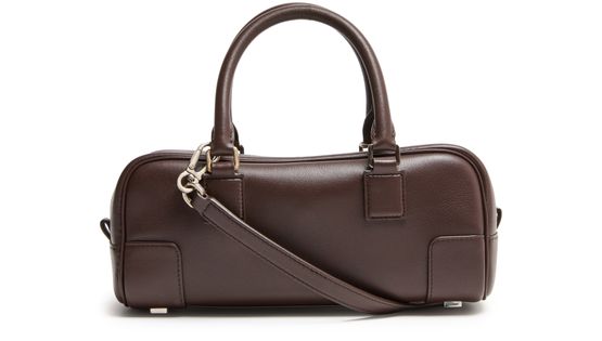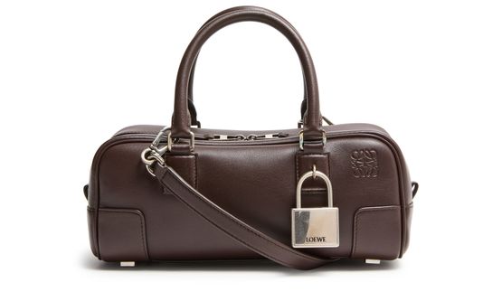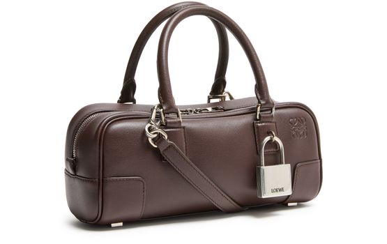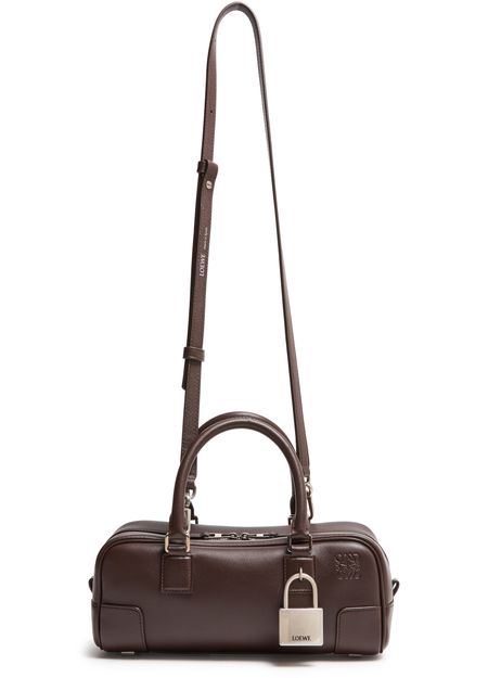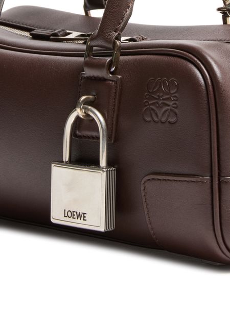 Reveal Loewe's Amazona 23 Cropped bag, a refined shoulder, crossbody or hand carry piece featuring a signature Anagram medallion. Crafted from shiny calfskin with double handles and a thin, adjustable strap, it boasts visible stitching, an embossed front logo, and a sleek silver finish for modern sophistication.