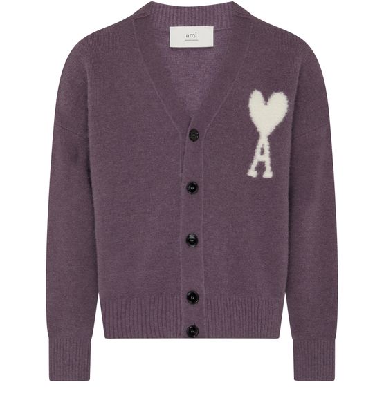 Ami's Ami de Cœur cardigan is a long-sleeved gilet with a straight cut and ribbed texture. It features a V-neck, chest logo, and buttoned fastening for a classic and stylish look.