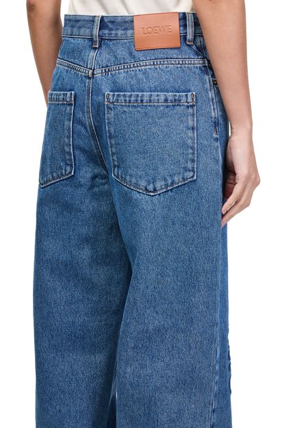 Reveal Loewe's Anagram baggy jeans, crafted with ankle-length precision and front pleating for a relaxed yet refined silhouette. Visible stitching and a front logo add signature flair, while belt loops and two front pockets ensure both style and practicality for versatile, everyday wear.