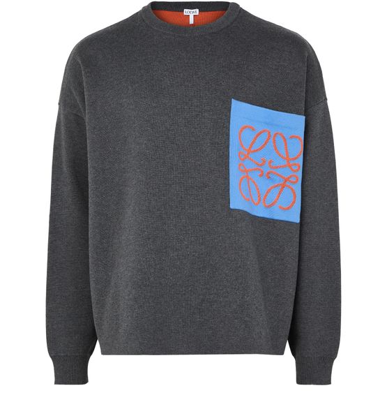Reveal Loewe's Anagram pocket sweater in cotton and viscose, a masterpiece of modern knitwear. This regular fit piece features a round neck and long, dropped sleeves, offering a relaxed silhouette. The embroidered front logo and patch detail add a touch of sophistication, making it perfect for any stylish ensemble.