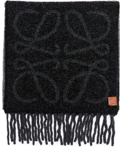 Reveal Loewe's Anagram scarf in alpaca and wool, a stylish accessory featuring fringed edges and an all-over logo. Perfect for elevating any ensemble with its contemporary design.