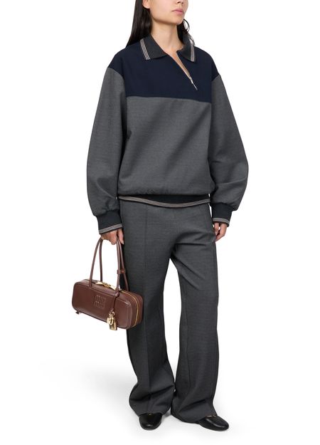 Introducing Miu Miu's Arcadie large leather bag, a masterpiece of elegance and functionality. Crafted from smooth leather, it features metallic 'Miu Miu' lettering and a gold finish. The spacious interior with a zippered pocket and double handles ensures both style and practicality.