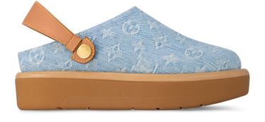 Iconic Monogram denim complements the relaxed style of the Aspen platform clog. This on-trend model comes with a removable back strap in emblematic Louis Vuitton natural leather, which is secured with engraved, gold-tone studs. A chunky rubber outsole completes this comfortable, easy-to-wear design.