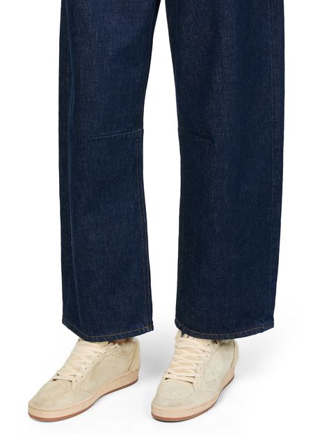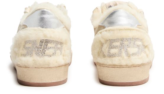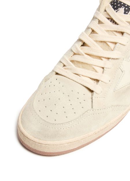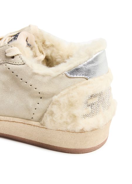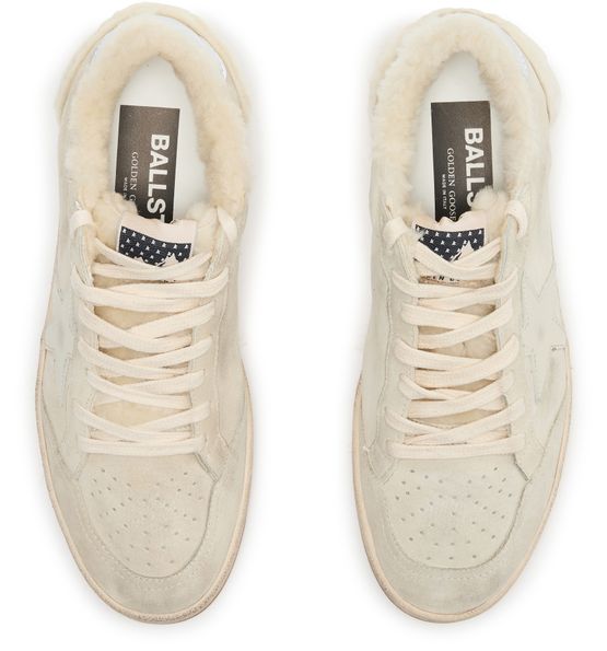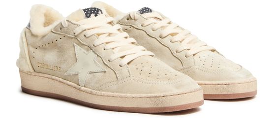 Unveil Golden Goose's Ball Star LTD in suede and shearling with a leather star. These sneakers feature a closed round toe and flat heel, offering both style and comfort. The visible stitching and contrast details enhance their modern appeal, while the logo on the tongue adds a touch of sophistication.