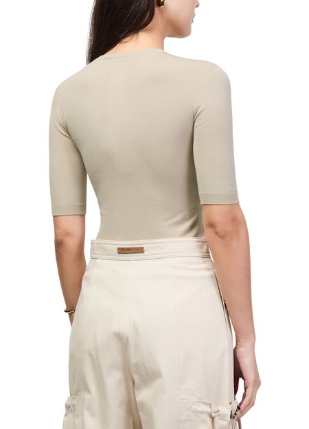 Reveal Max Mara's basic wool sweater, crafted with a round neck and short sleeves for a refined silhouette. The soft wool texture ensures comfort, while its versatile design pairs effortlessly with both tailored trousers and casual denim for a polished, modern look.