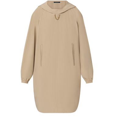 A pared-back, contemporary twist on a sporty staple: This dress recalls the comfortable, casual silhouette of a hoodie, reimagined in fluid silk crepe de chine for an elevated look. The cut is loose and loungey in a relaxed fit with voluminous batwing sleeves. An LV Circle chain detail adds a discreet signature to the neckline.
