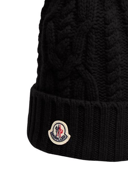 Introducing Moncler's logo beanie, a modern accessory featuring a round crown and turn-up brim. The visible stitching and logo at the front add a distinctive touch, making it a perfect blend of style and functionality.