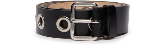 Alexander McQueen's belt features the brand's signature buckle and silver-tone hardware for a sleek, modern look. The metal finish adds a luxurious touch, while the adjustable length provides versatility in styling. A timeless accessory that effortlessly elevates any outfit, making it a must-have for the fashion-forward individual.