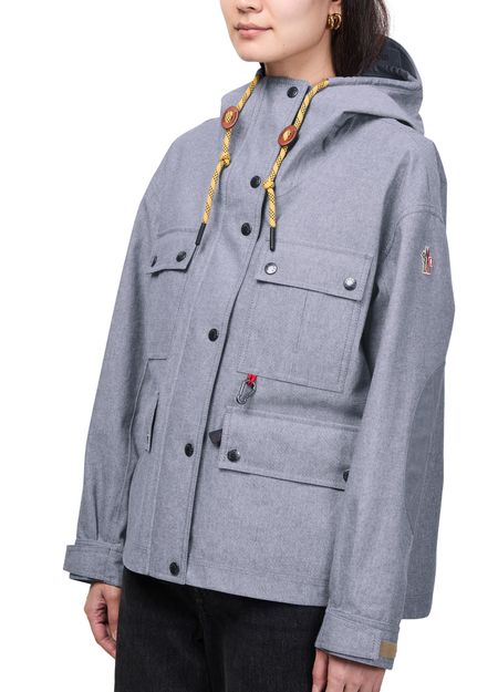 Reveal Moncler's Beziers jacket, a modern essential with a high neck and button fastening for a refined silhouette. Long sleeves and flap pockets add practical flair, while the patch pockets and subtle logo detailing elevate its casual appeal. Versatile for any occasion, this piece redefines everyday style.