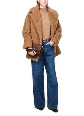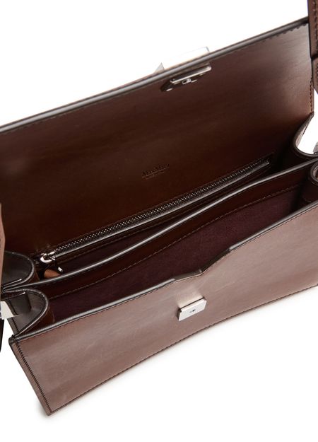 Reveal Max Mara's Bianca shoulder bag, crafted from smooth leather with a sophisticated flap closure. This elegant piece features a wide, adjustable strap and a zippered interior pocket, ensuring both style and functionality. The metallic logo on the front adds a touch of modernity, making it a must-have accessory.