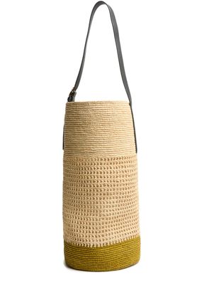• Description : Bucket bag, shoulder bag, single handle, leather handle, open weave.