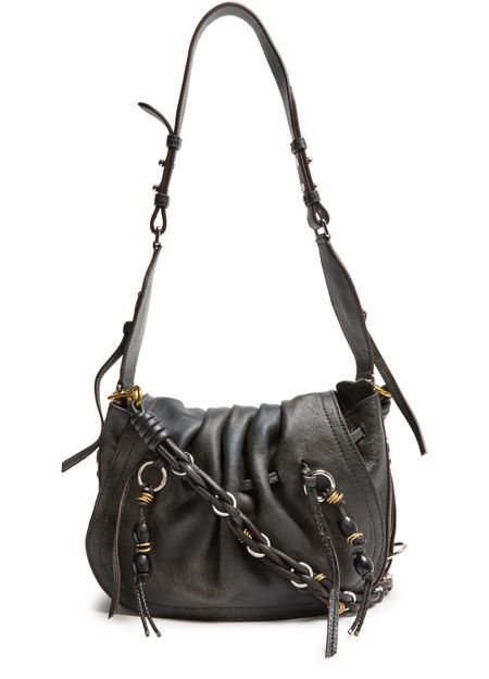 Reveal Isabel Marant's Bolton shoulder bag, crafted from exquisite grained leather. This elegant piece features a decorative chain strap and tassel details, offering both style and functionality. The zippered interior pocket and drawstring closure ensure your essentials are secure, while the antique metal finish adds a touch of sophistication.