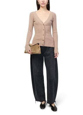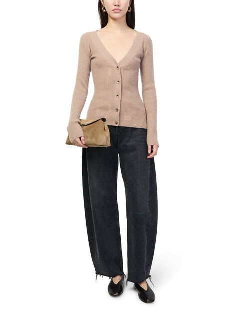Reveal Max Mara's ribbed button fastening cardigan, designed with long sleeves for a refined silhouette. The textured finish and classic button closure offer both comfort and sophistication, making it a versatile piece that transitions seamlessly from day to evening with effortless style.