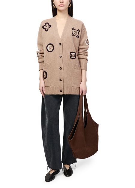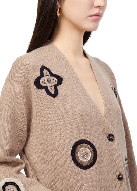 Reveal Max Mara's ribbed cardigan, featuring geometric embroidered details and long cuffed sleeves. The button fastening adds a refined touch, while the textured finish ensures a modern silhouette. Perfect for versatile styling, this piece transitions effortlessly from day to evening with understated sophistication.