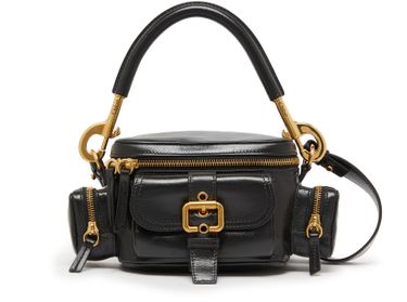 Chloé's Camera bag showcases a sleek silhouette with a zipper closure for effortless access. Its single compartment is complemented by interior patch pockets, enhancing organization. The gold finish adds a touch of elegance, while double handles and a detachable strap allow for versatile styling—hand carried or worn crossbody, it’s perfect for any occasion.