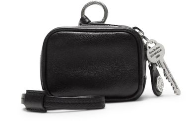 Reveal Acne Studios's Camero shoulder bag, crafted from grained leather with double handles for versatile carrying. The zippered front pocket and zipper closure offer secure storage, while visible topstitching and a front engraved logo add a refined, modern touch with sleek metal finishes.
