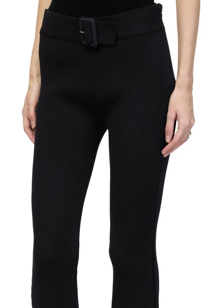 Reveal Courreges's capri rib knit pants bring a modern twist to everyday style. The bootcut silhouette and belted waist offer a flattering fit, while ribbed fabric ensures comfort. Perfect for versatile looks, these pants transition seamlessly from casual outings to polished ensembles.