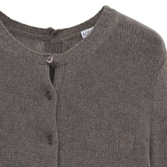 Reveal Loewe's ribbed wool cardigan, a refined essential with long sleeves and a button fastening. The soft wool texture and subtle ribbing create a sleek silhouette, while the versatile design transitions effortlessly from day to night. Distinctive details add a modern touch to this timeless piece.