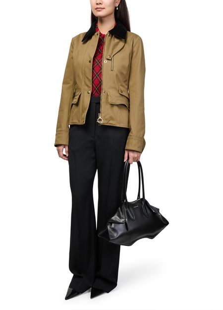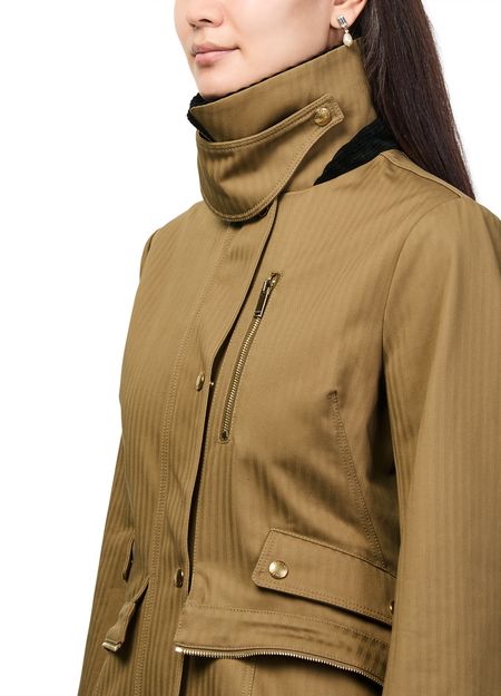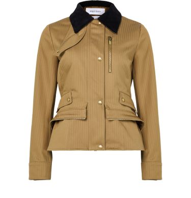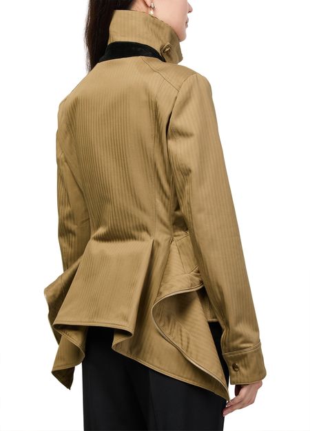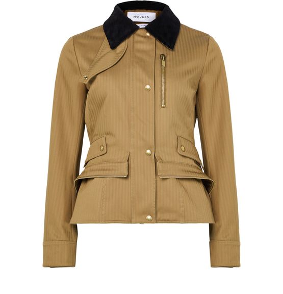 Reveal Alexander McQueen's casual jacket, a short, long-sleeved piece with an asymmetric cut and gold finish. Button fastening and flap pockets add practical flair, while a zipped breast pocket and unique silhouette ensure standout appeal. Perfect for elevating everyday looks with a modern, versatile edge.