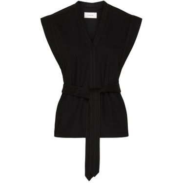Lemaire's Chasuble showcases a sleeveless silhouette with a stylish v-neck, perfect for layering. Its regular length offers versatility, while the subtle logo at the back label adds a touch of sophistication. Ideal for both casual outings and refined occasions, this blouse effortlessly combines elegance with comfort in every wear.